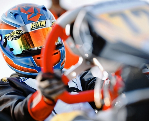 Das Prokart Raceland Wackerdorf begrüßte am Wochenende 6./7. April die Teilnehmer des ADAC Kart Masters endlich zum ersten Rennen des Jahres. Über 160 Fahrer gingen bei schönstem Frühlingswetter an den Start – darunter natürlich auch die Piloten von RMW Motorsport. Fahrercoach Christian Wangard ist zufrieden mit dem Beginn der Rennsaison: „Ich würde sagen, der Start hat recht gut geklappt. Am Anfang der Woche hatten wir einige Probleme, die wir glücklicherweise zum Rennwochenende beheben konnten. Aber man hat ganz klar gesehen, wo wir noch Schwächen haben.“ Seiner Meinung nach sei das Fahrerfeld extrem stark gewesen und der eine oder andere Fahrer habe sich am ersten Wochenende noch etwas schwer getan. Trotzdem gibt sich der Koblenzer zuversichtlich: „Wir wissen genau, an welchen Schrauben wir noch drehen müssen, damit wir in Ampfing noch schneller werden.“