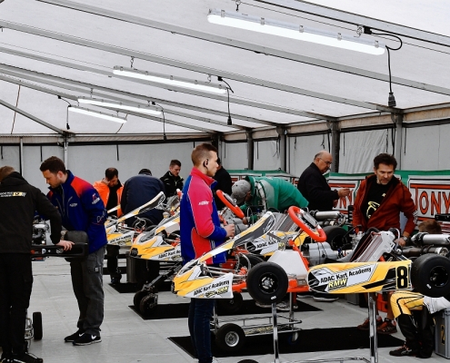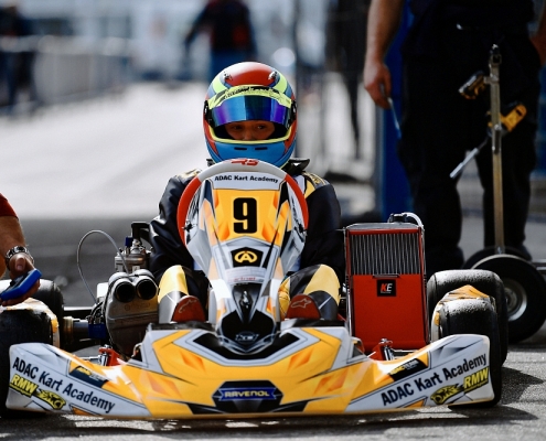 Auch die ADAC Kart Academy war in Wackersdorf mit dabei – bei der einige blutjunge Fahrer zum ersten Mal überhaupt in einem Kart saßen. „Am vergangenen Donnerstag hatten wir da vorab ein paar Einstellfahrten, wo wir viel Arbeit in die „track walks“ gesteckt haben. Ausserdem haben mit den jungen Piloten Telemetrie-Daten ausgewertet und untereinander verglichen. Ein Vergleich unter fünf Piloten ist natürlich schon ein großer Vorteil“, verrät Wangard. Auch mit der Kamera habe man bislang sehr viel gearbeitet und dadurch schon etwas bei den jungen Piloten bewegen können. „Da sieht man, dass wir noch viel an den Basics arbeiten müssen, um für den Rest der Saison auch mal ganz oben auf dem Podest zu stehen“, offenbart der 31-Jährige, der an diesem Wochenende von Luca Lippkau, einen ehemaligen Fahrer des RMW Motorsport Teams, unterstützt wurde.