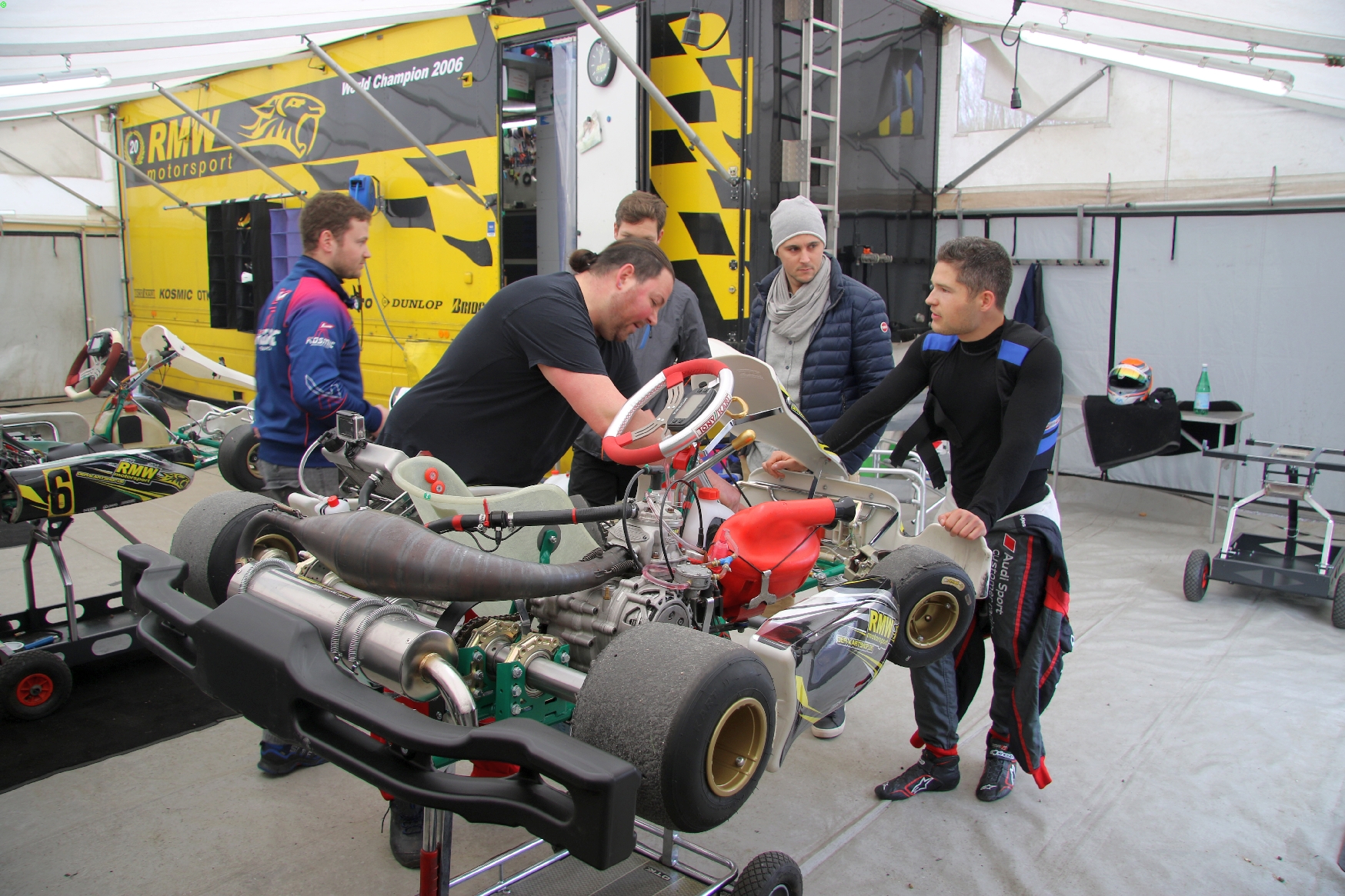 Christopher Mies ist seit dem letzten Wochenende ein Teil der RMW motorsport Familie und wird in dieser Saison an einigen Tests teilnehmen. Der Audi Werksfahrer ist jetzt stolzer Besitzer eines KZ2 Tonykart mit Vortex Motor. Ebenfalls was Patrick Lumma, der ehemalige Birel Werkspilot war zu Besuch und drehte einige Runden. Für die Tagesbestzeit sorgte jedoch der ehemalige Tonykart Werkspilot und Freund der Familie Wangard Marcel Jeliniowski. Er legte mit dem Tonykart von Christopher auf Anhieb eine Zeit von 43.20 vor, die an diesem Tag unerreicht blieb. An einer guten Vorbereitung für den Winterpokal und das erste WAKC Rennen arbeiteten an diesem Wochenende außerdem die RMW Stammpilotinnen und -piloten Isabell Brosselt, Bastian Bense, Moritz Wiskirchen, Leo Stienemeier, Dalvin Mustafa, Nico und Alicia Spindler.
