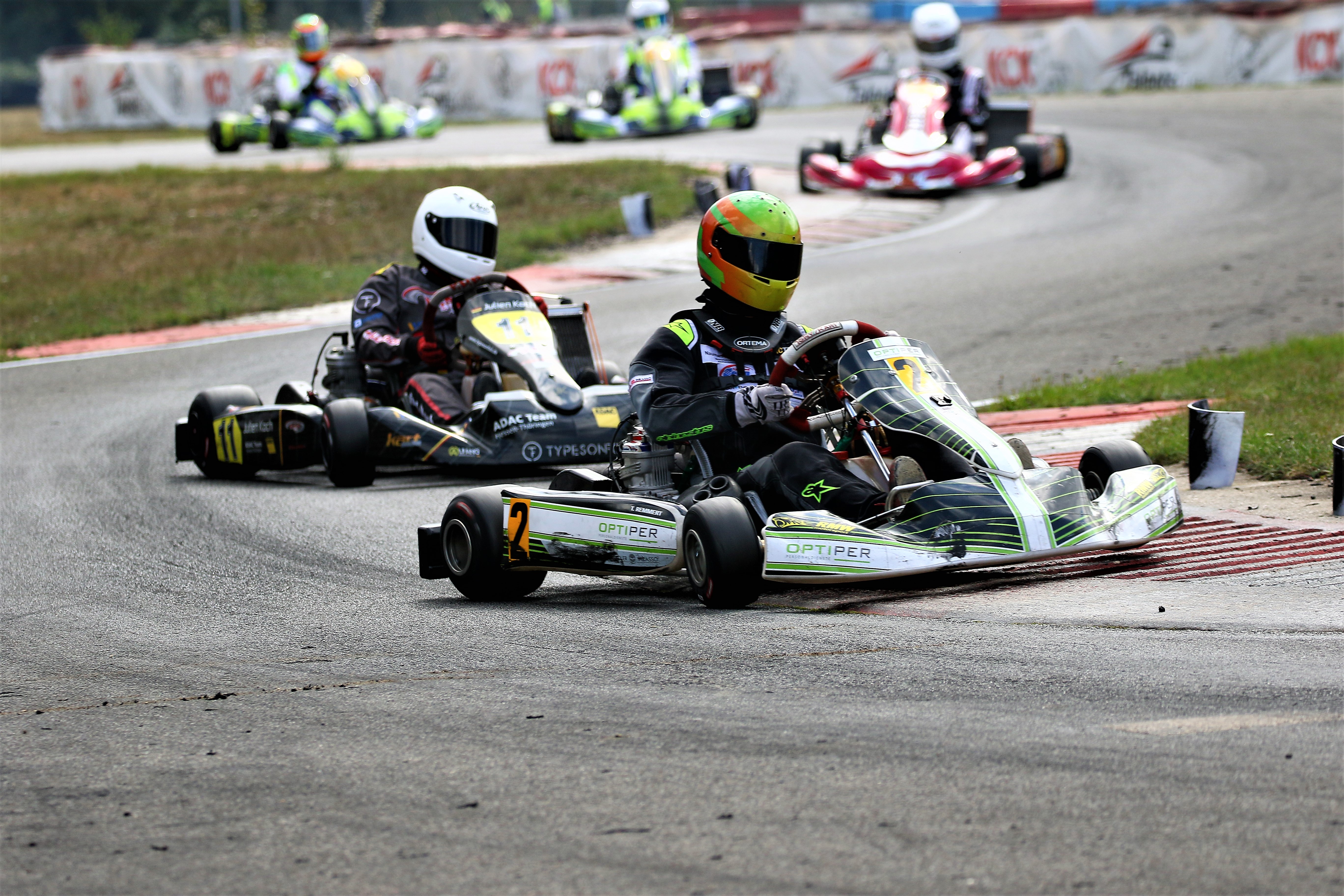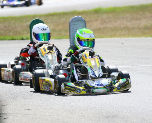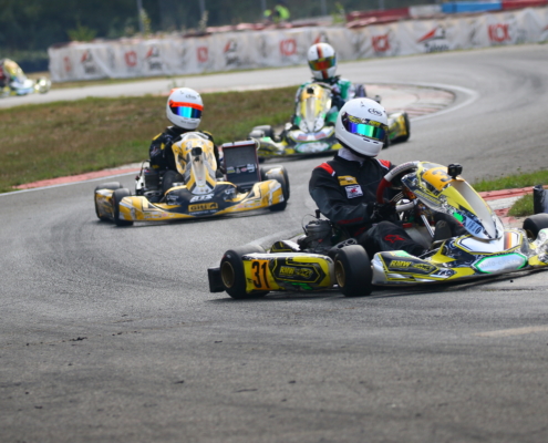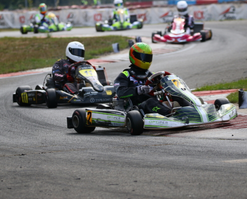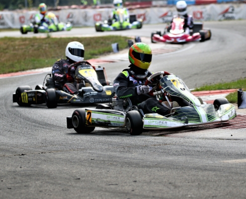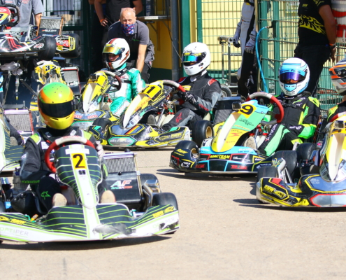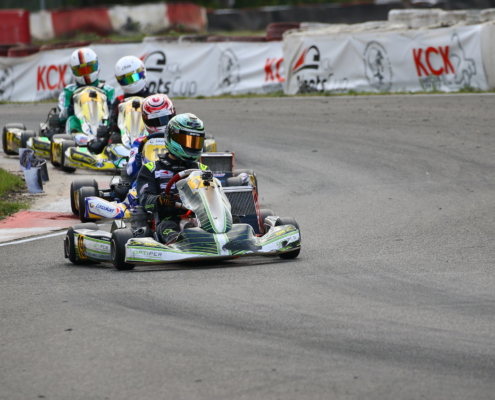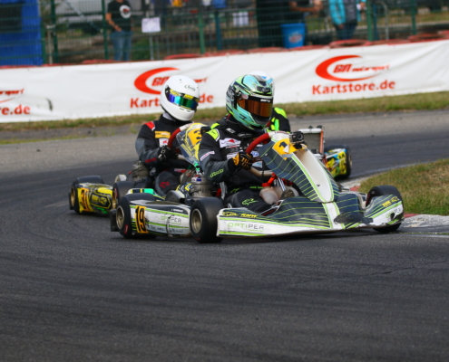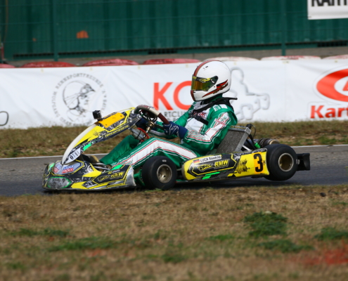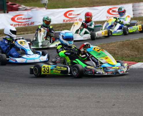 Ein Kandidat fürs Mittelfeld war Yannik Remmert mit Platz neun und 15 in den Wertungsläufen. Als Zwölfter schloss er den Tag ab. Sein Teamkollege Elias Eise folgte als 17. Eine weitere gute Entwicklung lieferte Roman Westrich ab. Bei seinem vierten Tag im Rennkart wurde er 19. und verkürzte den Abstand zur Spitze kontinuierlich. Einen schwarzen Renntag erlebte hingegen Luca Römhild mit gleich zwei Ausfällen. Ebenfalls Newcomer ist Finn Liedke im ROK Cup Germany. Bei seinem vierten Rennen in der ROK Mini-Klasse war er nach dem Qualifying starker Siebter. In den Rennen machte sich noch etwas die fehlende Erfahrung bemerkbar. Doch mit den Rängen 12 und zehn brauchte er sich keineswegs verstecken.