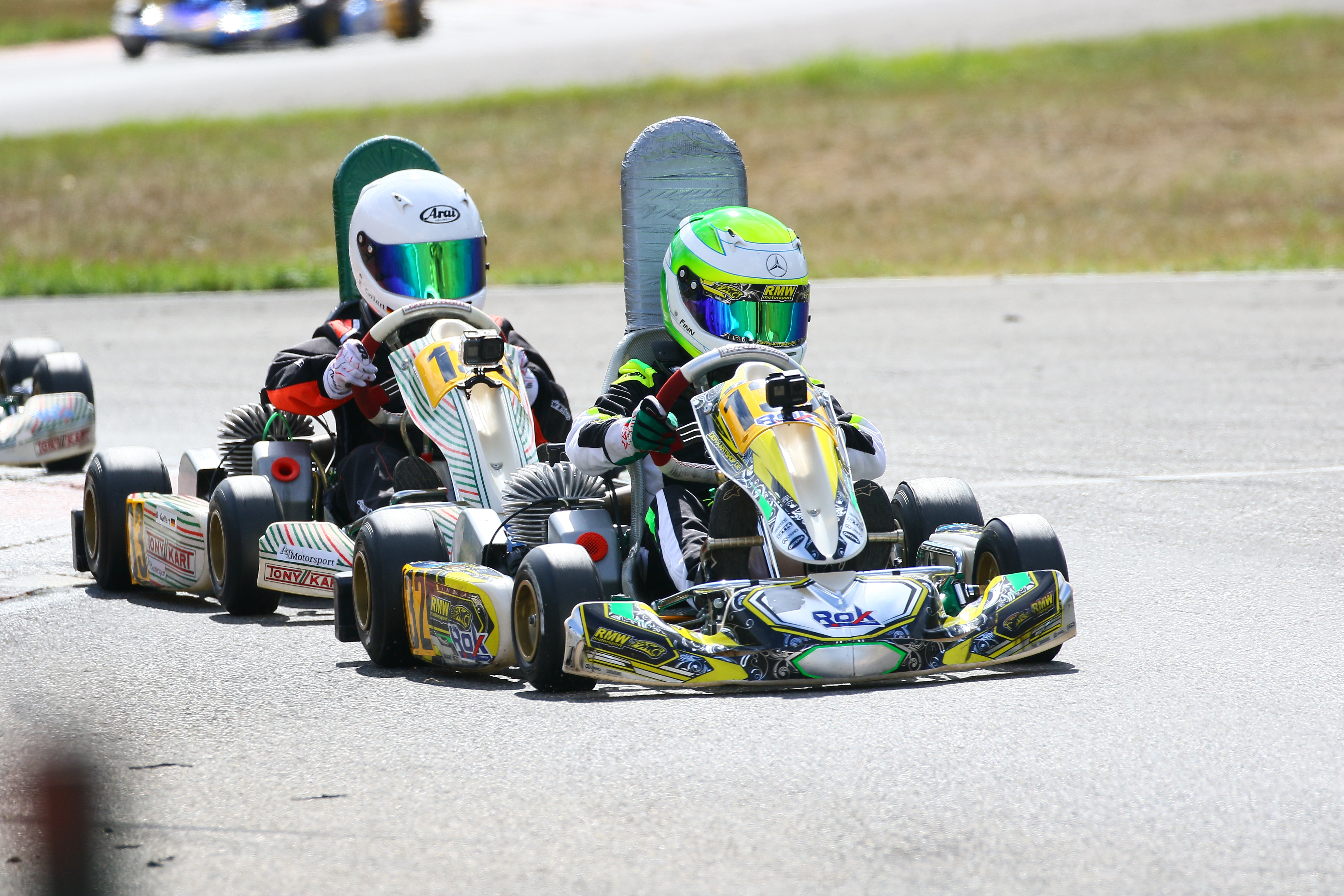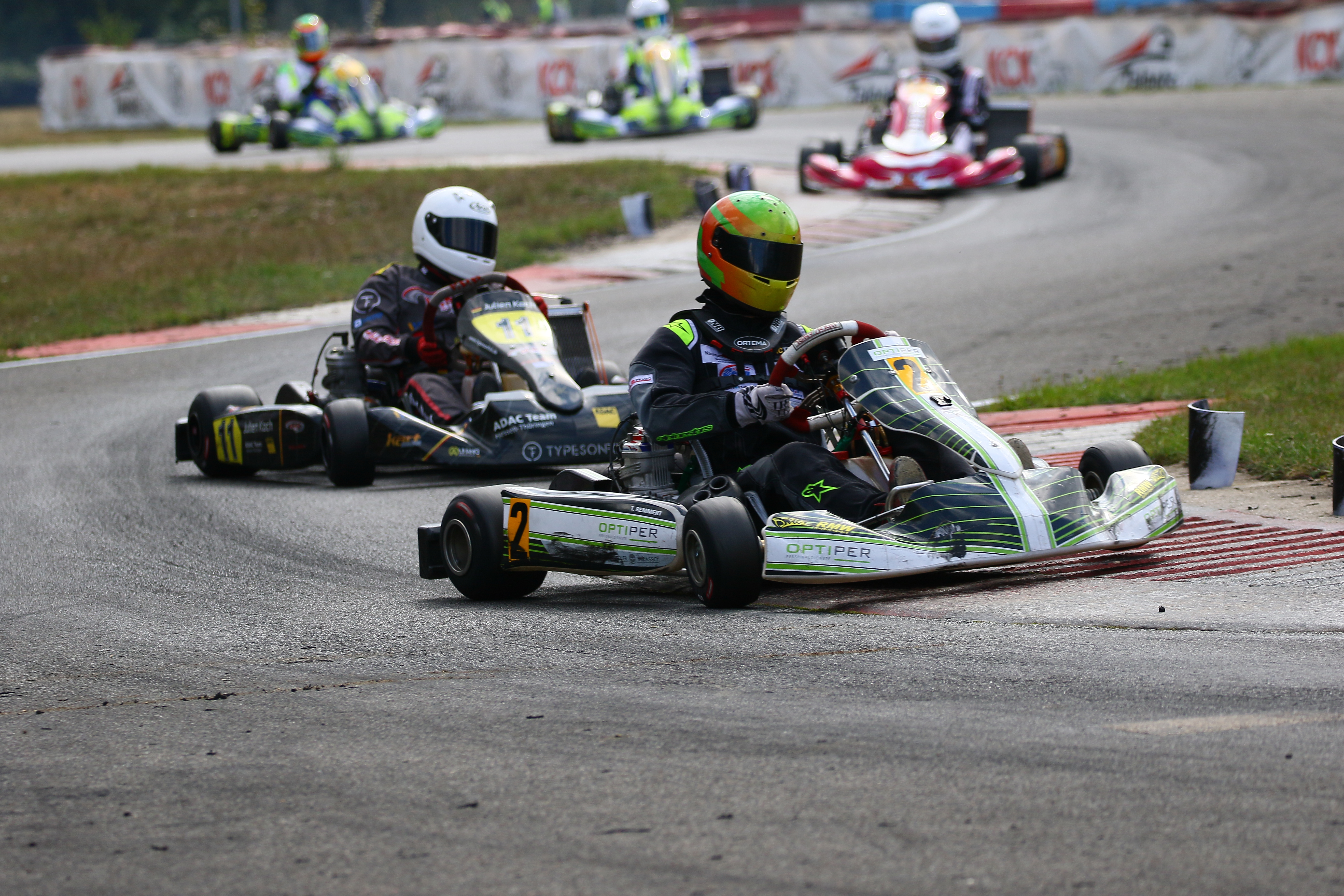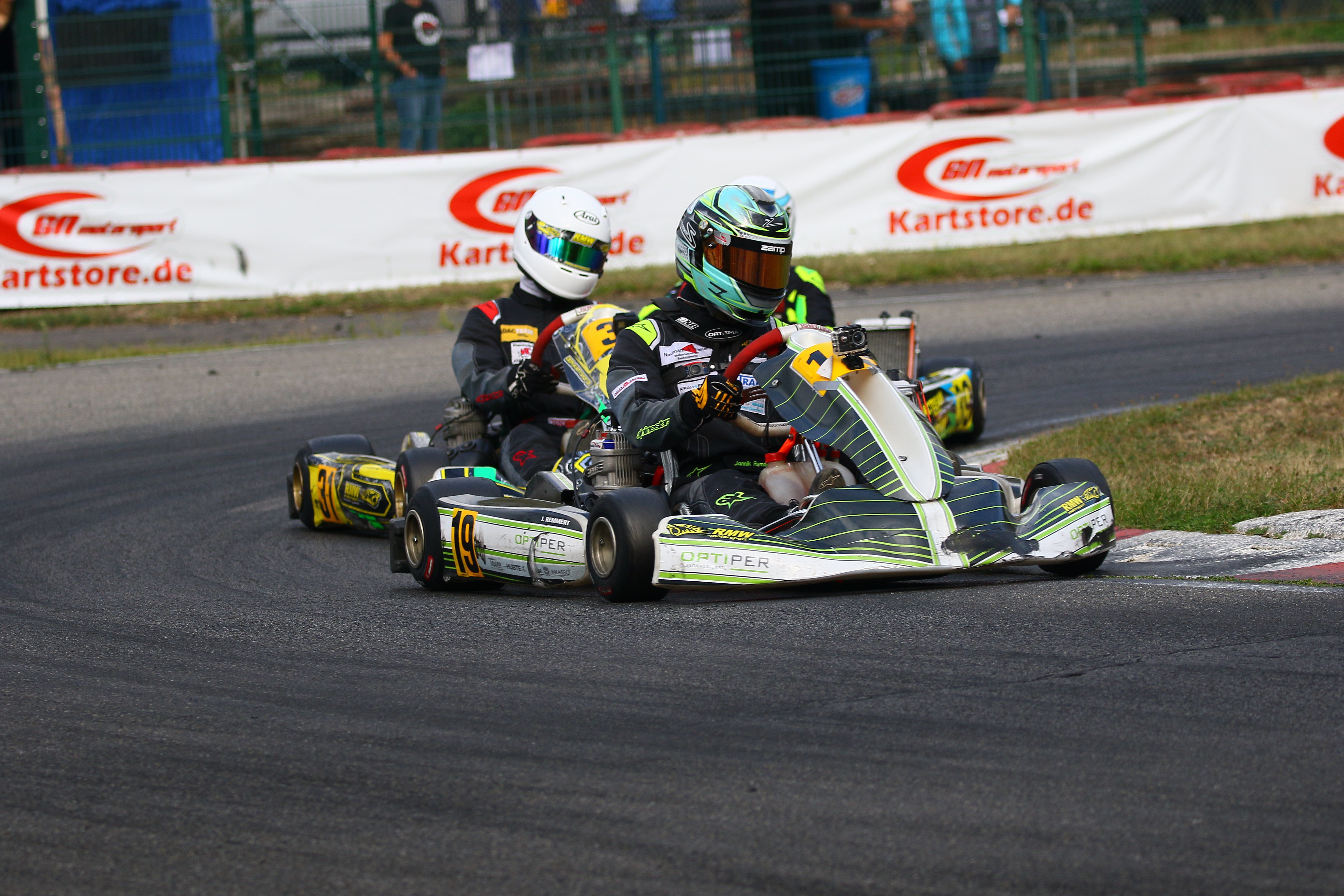 Ein Kandidat fürs Mittelfeld war Yannik Remmert mit Platz neun und 15 in den Wertungsläufen. Als Zwölfter schloss er den Tag ab. Sein Teamkollege Elias Eise folgte als 17. Eine weitere gute Entwicklung lieferte Roman Westrich ab. Bei seinem vierten Tag im Rennkart wurde er 19. und verkürzte den Abstand zur Spitze kontinuierlich. Einen schwarzen Renntag erlebte hingegen Luca Römhild mit gleich zwei Ausfällen. Ebenfalls Newcomer ist Finn Liedke im ROK Cup Germany. Bei seinem vierten Rennen in der ROK Mini-Klasse war er nach dem Qualifying starker Siebter. In den Rennen machte sich noch etwas die fehlende Erfahrung bemerkbar. Doch mit den Rängen 12 und zehn brauchte er sich keineswegs verstecken.