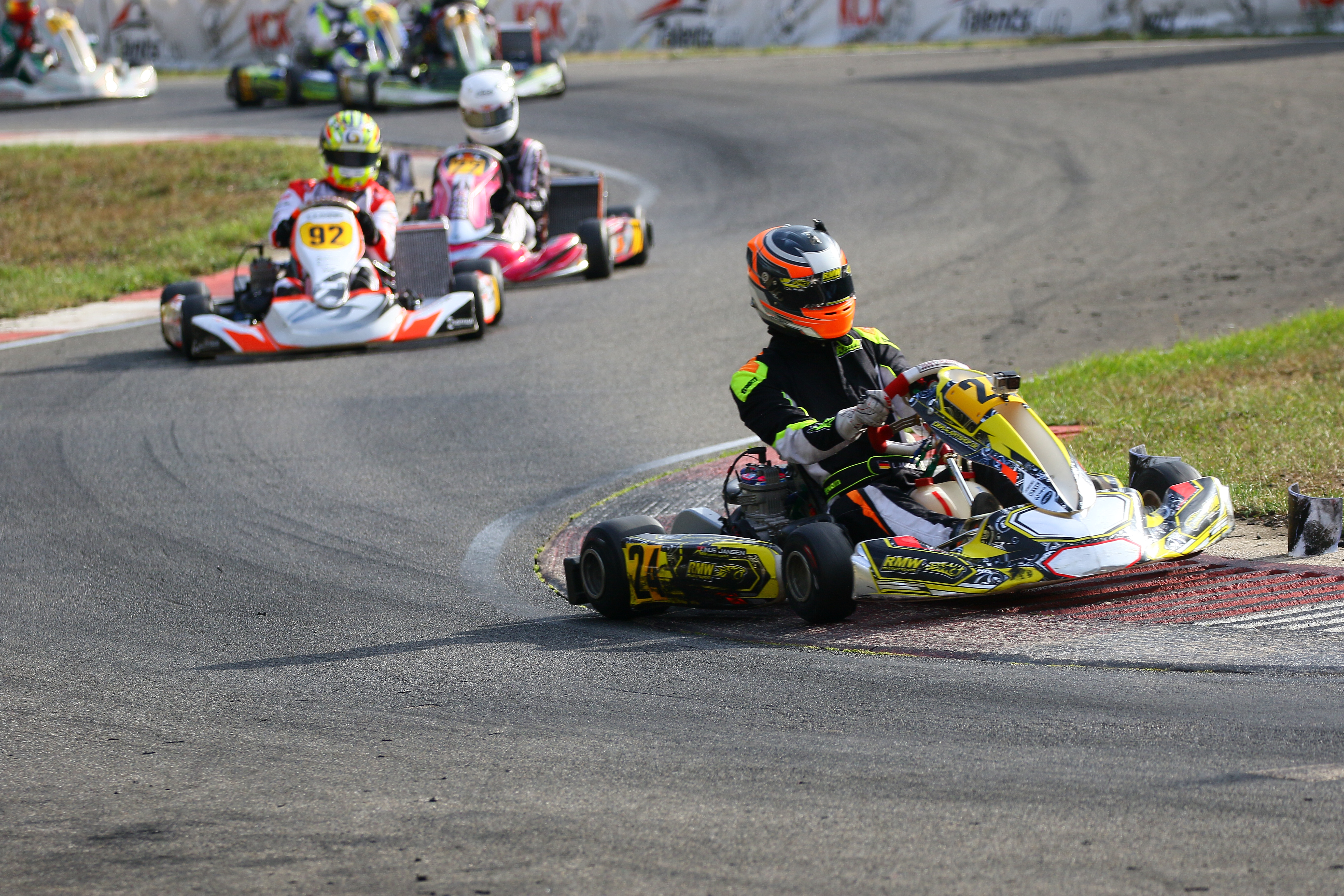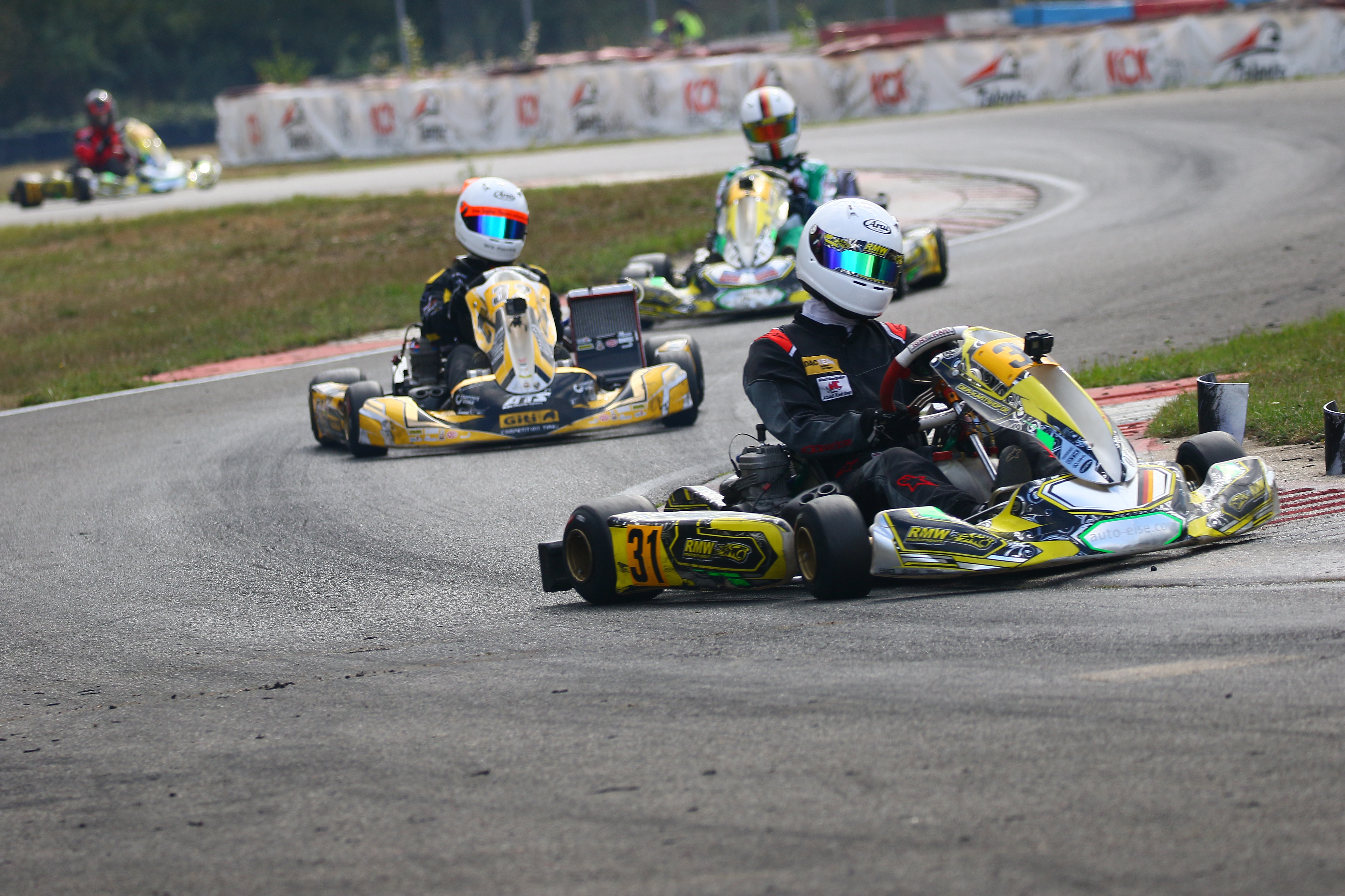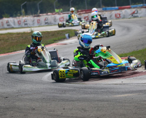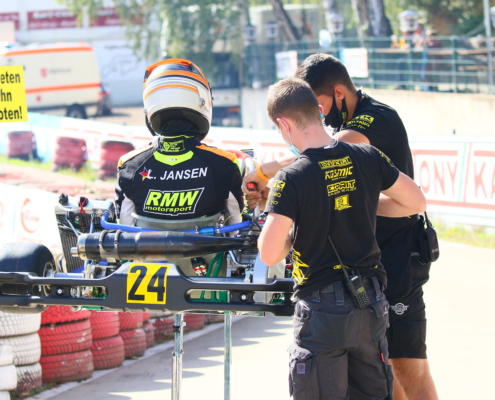 Der Erftlandring in Kerpen begrüßte am vergangenen Wochenende 5./6. September zum zweiten Mal die Fahrerinnen und Fahrer des Westdeutschen ADAC Kart Cup. Bei der Veranstaltung des AC Rübenach e.V. traten neun Piloten in den gelb-schwarzen Farben des Koblenzer Teams an. Am Ende dürfte man sich über einen Tagessieg bei den X30 Junioren freuen. Mit den Rennen auf der 1.107 Meter langen Strecke steuerte die ADAC Regionalserie auf die Halbzeit zu und erlebte bei besten Witterungsbedingungen aufregende Wertungsläufe. Die Teamverantwortlichen von RMW Motorsport waren am Sonntagabend zweigeteilter Stimmung. Der Speed war in allen Klassen auf Siegniveau, am Ende durfte aber nur Maddox Wirtz die Korken knallen lassen.
