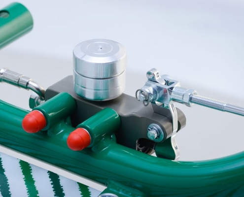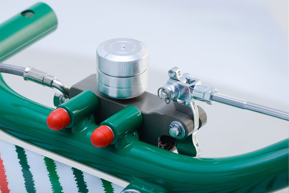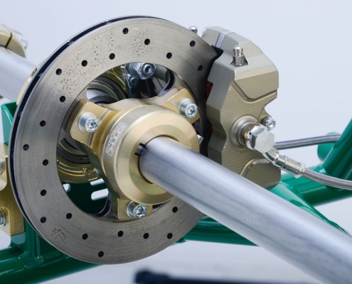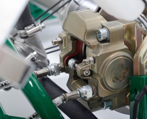 Die Aerodynamik spielt im Motorsport eine sehr große Rolle, nicht nur in der Formel 1. Aus diesem Grund hat man den Aerokit aus dem Racer 401 R in einer kleineren Version übernommen. Beim Hauptbremszylinder hat man sich entschieden auf eine Einkolbenversion zu wechseln, womit man deutlich an Gewicht einsparen konnte. Dazu wurde die Bremszange ebenfalls komplett überarbeitet. Die selbstnachstellende BSM4 Vierkolben Bremse ist ein weiterer Schritt in Sachen Optimierung. Verzögert wird jetzt auch mit einer Innenbelüfteten Bremsscheibe. Die Verstellung von Sturz und Nachlauf erfolgt nun über denselben Exzenter, der bereits in den letzten Jahren in den Racer Modellen zum Einsatz kam.