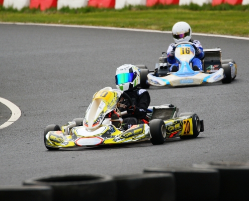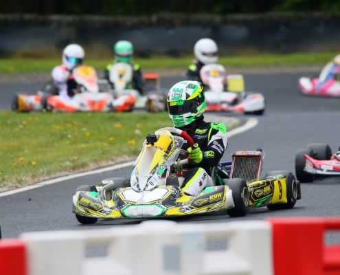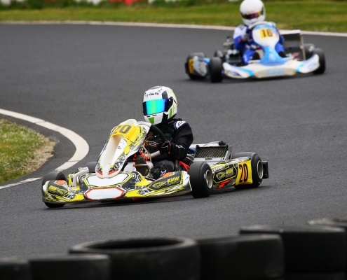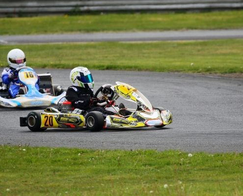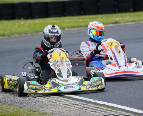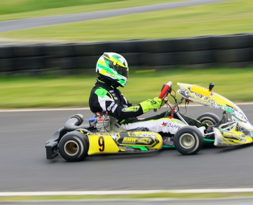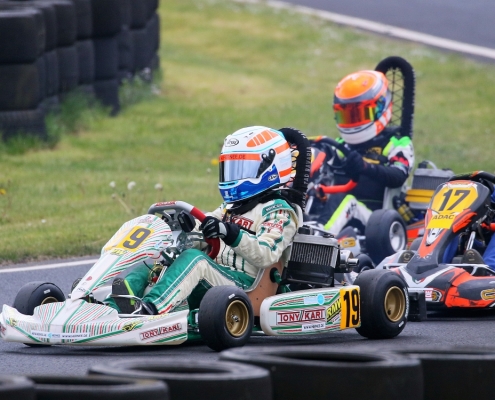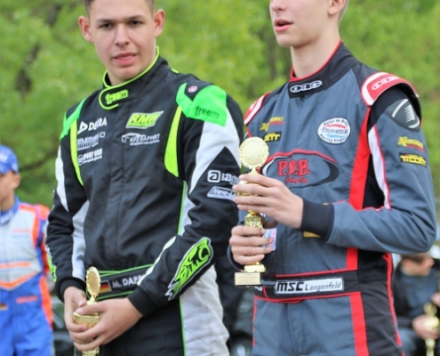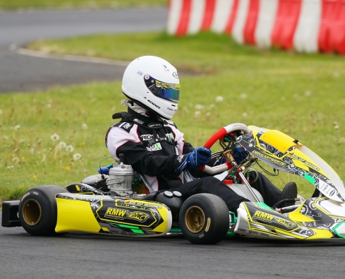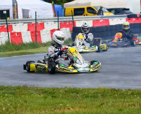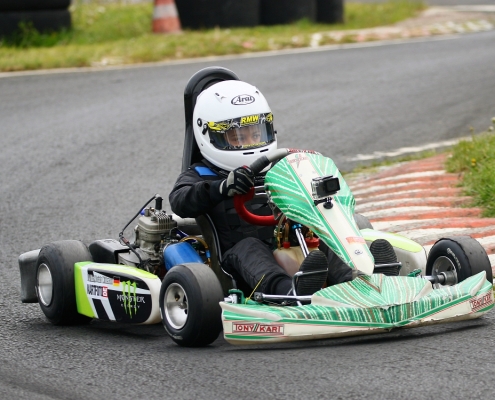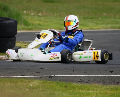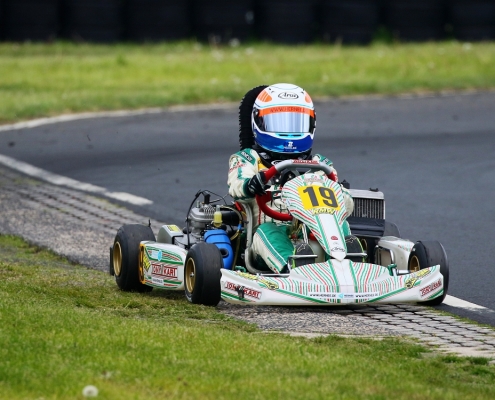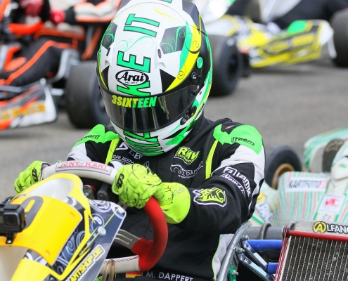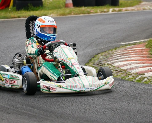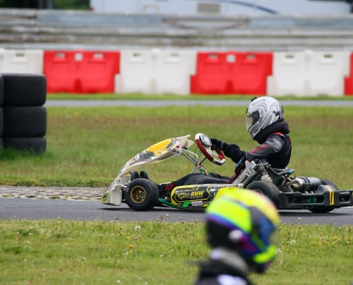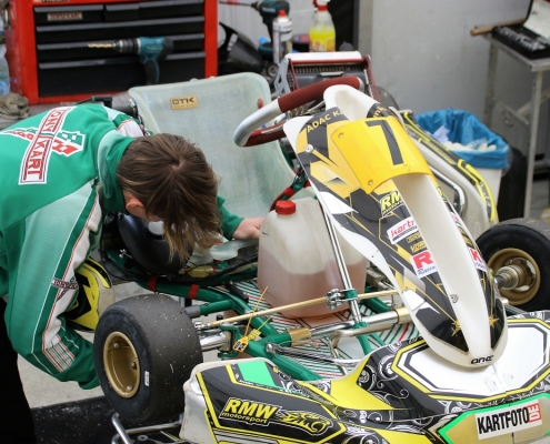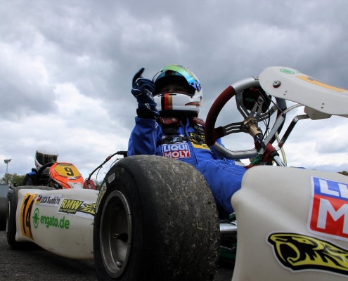 Bei den X30 Senioren starteten Phillipp Menzer, Max Dappert sowie Neuzugang Julian Labitzke für RMW Motorsport. Für Letzteren war das Rennwochenende eine Premiere. „Julian ist sein allererstes Rennen gefahren. Der hatte erst am Freitag sein Kart bekommen. Es war schön anzusehen, wie er sich das ganze Wochenende stetig verbessert hat“, erklärte der Koblenzer begeistert. Im ersten Lauf war sein Schützling leider durch eine Kollision auf den vorletzten Platz zurückgefallen. Im zweiten Lauf kam er als 14. über die Ziellinie. Bei Julians Teamkollege Philipp Mentzner lief es am Rennwochenende alles andere als rund. In das erste Rennen war er mit einer Sekunde Abstand gestartet, weil er keine freie Runde im Zeittraining gefunden hatte. „Er konnte dann aber noch ein paar Plätze gut machen und kam als Elfter ins Ziel. Danach war für ihn das Rennwochenende aus gesundheitlichen Gründen leider beendet“, fasst Michael Wangard zusammen. Max Dappert zeigte die beste Leistung des Trios mit zwei dritten Plätzen. Michael Wangard glaubt aber, dass bei dem Kleinrinderfelder noch viel mehr drin ist: „Maximilians Ergebnisse waren in Ordnung. Da müssen wir aber noch an ein paar Feinheiten arbeiten – das kriegen wir hin. Beim nächsten Rennen wird er richtig angreifen.“