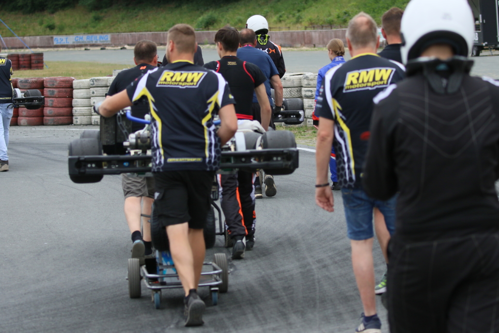 Nach der Anreise am Donnerstag und ersten Trainingskilometern am Freitag ging es für das RMW-Aufgebot auf dem 820 Meter langen Kurs zur Sache. Dabei galt es für die meisten Piloten, sich zunächst auf die neue Streckencharakteristik einzustellen. Besonders für die Youngster im X30 Senior-Lager war Harsewinkel Neuland – entsprechend wertvoll war jede gefahrene Runde.