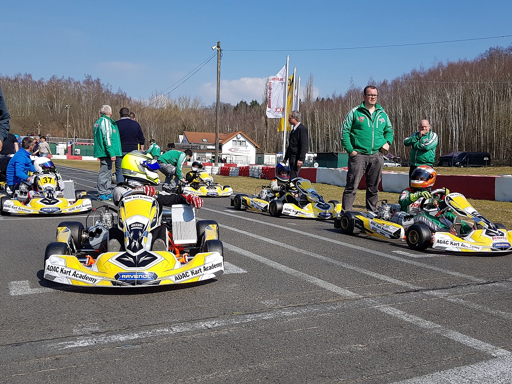 Bereits am Freitag lud die ADAC Kart Academy auf dem 1.107 Meter langen Erftlandring zu den ersten Testfahrten ihrer zweiten Saison ein. Eine Serie, die der ADAC im vergangenen Jahr ins Leben rief, um jungen Menschen im Alter von 12 bis 14 Jahren für den Motorsport zu begeistern. Das RMW-Motorsport-Team ging mit nicht weniger als vier Piloten in das Trainingswochenende, darunter Kez Leon König, Nick Deißler, Lukas Schaecher und Leonardo Rodriguez. Für sie standen erst einmal Grundkenntnisse im Kartsport auf dem Programm Dazu zählte u.a., das Verständnis über die Abläufe eines Rennwochenendes zu verinnerlichen. Aber auch Startübungen und die für Anfänger komplizierte Formations-Runde wurden ausgiebig geübt. Dennoch kam natürlich der Spaß – das Fahren – nicht zu kurz. Und so zeigte sich der Routinier Michael Wangard von seinen Schützlingen begeistert: „Es ist unheimlich klasse zu sehen, mit welchem Enthusiasmus unsere Fahrer an ihre Aufgaben gingen. Noch mehr begeistert mich natürlich, dass sie am Wochenende eine unheimliche steile Lernkurve gezeigt haben. Wir haben zwar noch ein wenig Arbeit vor uns, doch haben wir ein großes Stück vom Rückstand abknabbern können“. Da das ADAC-Kart-Academy-Trainingswochenende im Rahmenprogramm des traditionellen Osterlaufes des Kart-Club Kerpen stattfand, waren auch der Bambini-light-Pilot Matti Klasen sowie die beiden X30-Senior-Piloten Ben Fricke und Maximilian Kannegießer im RMW-Motorsport-Team mit dabei. „Gerade von den beiden Routiniers Fricke und Kannegießer konnten sich unsere Youngsters im Zelt sehr viel abschauen“, berichtet Michael Wangard und resümiert weiter: „Wir hatten jede Menge Spaß. Alle Tests verliefen wie geplant, die Stimmung war hervorragend. Als Team sind wir mehr als zufrieden mit dem Wochenende“.