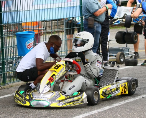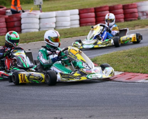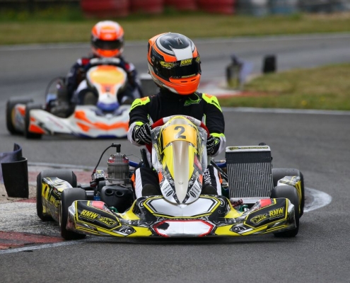 Mit sieben Piloten stellte RMW Motorsport mehr als ein Viertel des X30 Senioren-Feldes. Zu den großen Favoriten zählte Linus Jansen. Auf seiner Heimstrecke war er in den freien Trainings Schnellster, verhaute aber das Qualifying und musste sich dann wieder nach vorne kämpfen. In einem sehr engen Feld – Platz eins bis 15 trennten nur eine halbe Sekunde – ebnete er sich aber seinen Weg und beendete die Wertungsläufe mit einem dritten Rang und einem Sieg. In der Tageswertung schaffte er es damit noch auf das Siegerpodium.