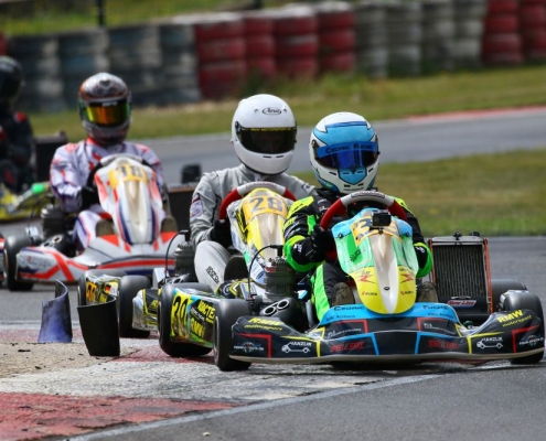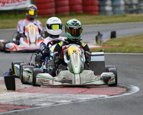 Ebenfalls die Sektkorken knallen ließ das Team aus Koblenz bei den X30 Junior. Hier war es ADAC Kart Masters-Vizechampion Maddox Wirtz der sich mit einem Doppelerfolg den Tagessieg nicht mehr nehmen ließ. Seine beiden Teamkollegen mischten ebenfalls in den Top-Ten mit. Team-Newcomer Jan Waibel fühlte sich auf Anhieb wohl und landete auf Rang sieben, gefolgt von Luca Römhild als achter. Letzterer hatte eine lange Winterpause und musste in Kerpen erst wieder in seinen Rhythmus finden. Gleiches Problem hatte auch OK Junior Variato Wildemamn. Mit großen Erwartungen auf den 1.107 Meter langen Erftlandring gereist, fehlte ihm am Ende ein Stück zur Spitze. Platz elf in der Endabrechnung entsprach nicht seinen Vorstellungen.