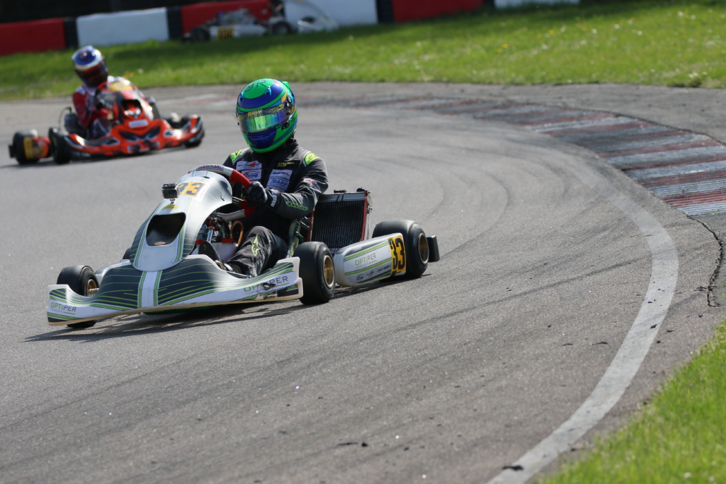 Andre fand zu Beginn der Veranstaltung noch nicht schnell genug in seinen Rhythmus und lag im Zeittraining auf Rang 20 der 31-köpfigen Kategorie. Von dort aus gab es für den erfahrenen Kartfahrer dann aber kein Halten mehr. Bereits im ersten Rennen ließ Andre mit guten Zeiten aufhorchen und verbesserte sich bereits bis in das vordere Mittelfeld. Im zweiten Lauf sorgte er dann für noch mehr Jubel und überquerte das Ziel auf der überzeugenden neunten Position.