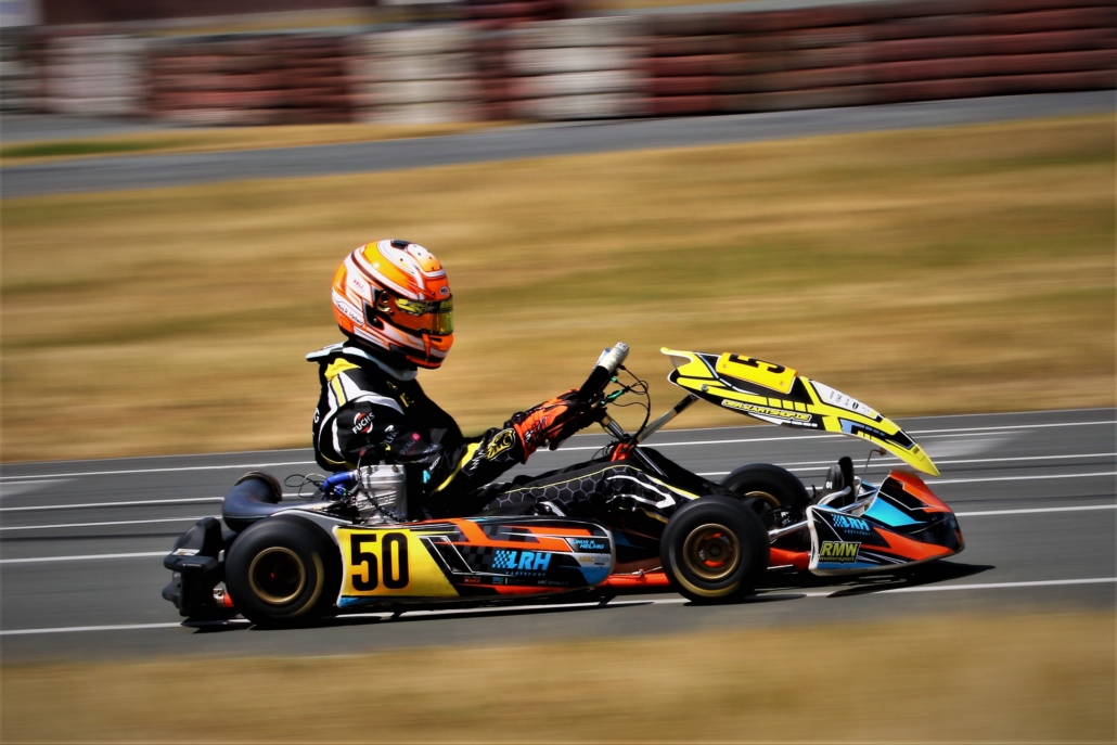 Zeitgleich hielt Noel Schweickert im baden-württembergischen Liedolsheim die RMW Motorsport-Fahnen hoch. Im WAKC duellierte sich der Nachwuchspilot ebenfalls bei den X30 Senioren und traf dabei auf ein anspruchsvolles Fahrerfeld. Nach einem eher verhaltenen Zeittraining setzte Noel in der Arena of Speed ein deutliches Ausrufezeichen und schaffte es von Rang 17 aus bis auf Platz acht in die Top-Ten nach vorne. Leider wurde er im ersten Lauf durch einen Technischen Defekt etwas eingebremst, konnte aber im 2. Lauf wieder weiter nach vorne fahren.